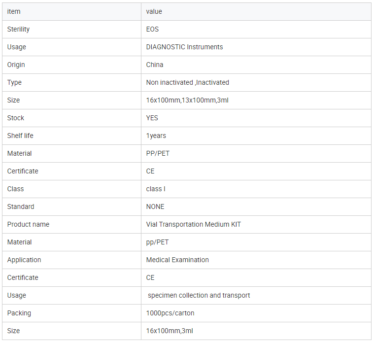Disposable virus sample collection tube is used to collect and deliver a clinical specimen containing viruses, from the acquisition spot to the test laboratory. This kit can apply standard clinical laboratory operating procedures for virusl culturing or testing.